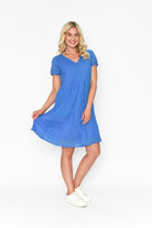 Taylor Dress Cap Sleeve Solid With Lining Cornflower